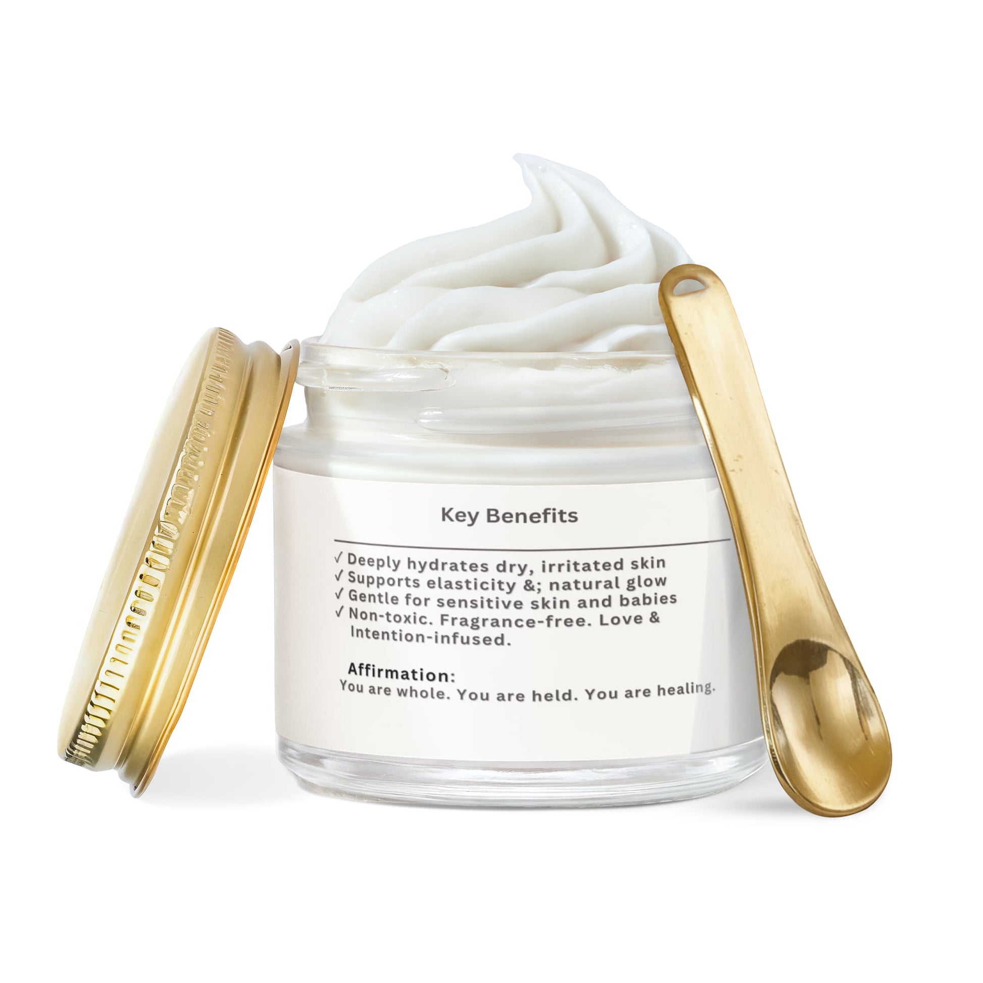 - Sacred Hydration: Rich in vitamins A, D, E, and K to strengthen the skin barrier and lock in healing moisture.